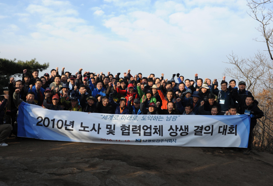 최근 업계에서 화두가 되고 있는 ‘相生 경영’의 일환으로 워크아웃 업체인 남광토건(대표:이동철)이 ‘相生 등반행사’를 가졌다. 이 회사는11월 19일(金) 대표이사 및 임직원, 노동조합, 협력업체 150여명이 참석한 가운데 청계산에서 ‘相生 등반행사’를 실시했다.