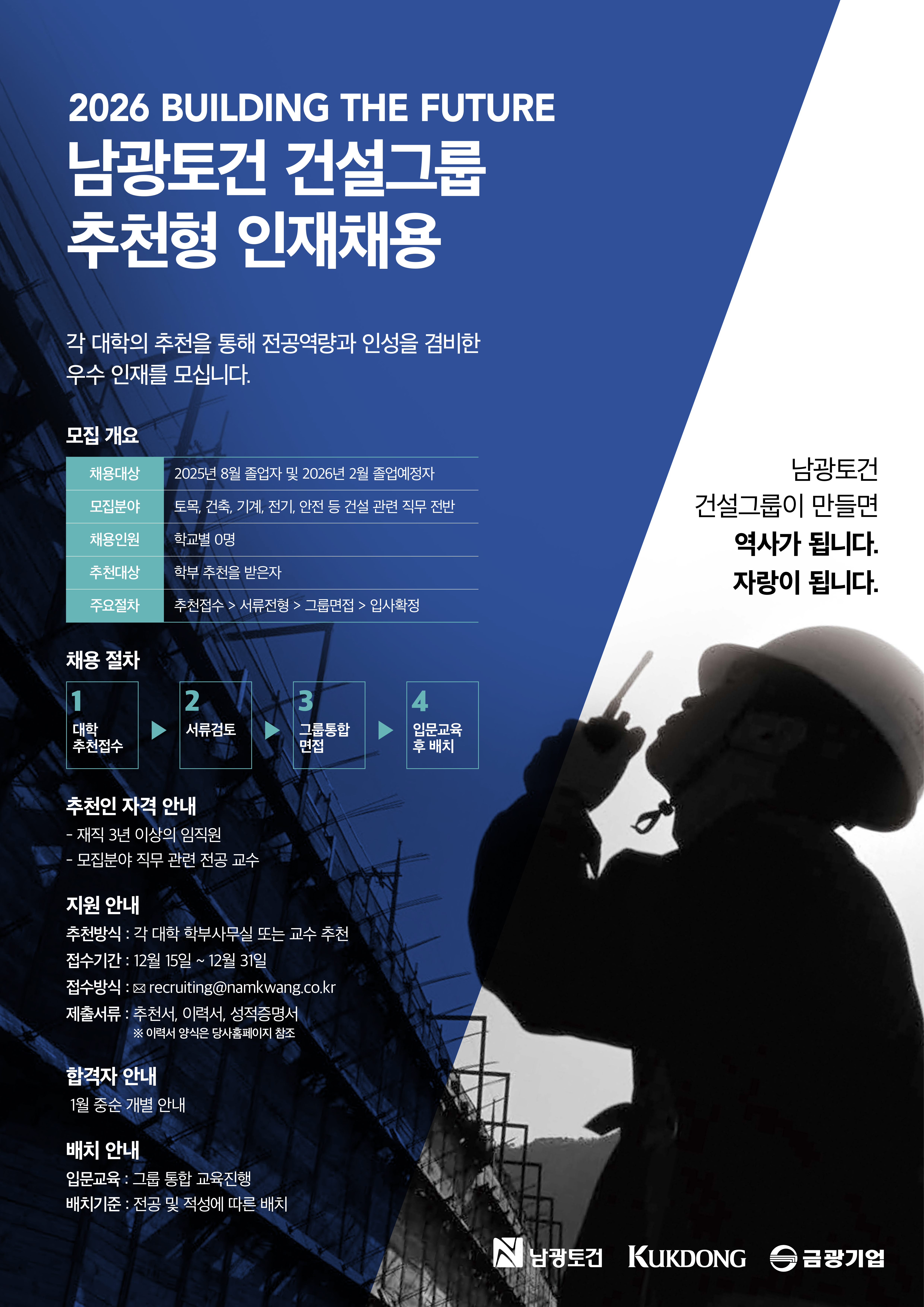 남광토건 건설그룹 추천형 인재채용 지원서 양식