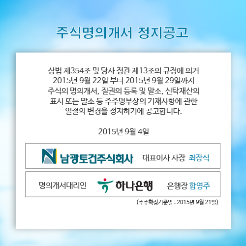 주식명의개서 정지 공고
