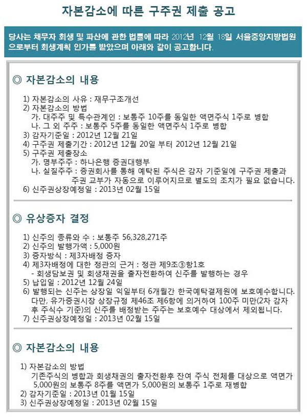 자본감소에 따른 구주권제출 공고