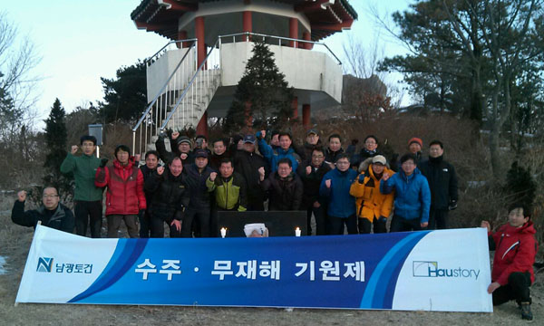 남광토건(대표이사 최장식(崔長植), 001260) 토목부문 임직원 30여명은 18일 영하12도의 혹한을 뚫고 충청남도 홍성군 소재의 백월산 정상에서 ‘수주 및 안전기원제’를 가졌다.